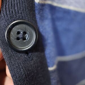 Sons of Intrigue Classic Blue Striped Preppy Cardigan Sweater Mens LG