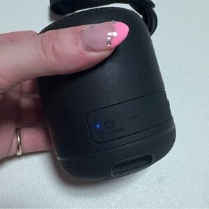 Compact and portable. Delivers powerful sound. Ideal for travel and outdoor use. Has a little cosmetic wear but works well!