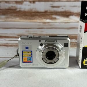 Capture life's moments with the Sony DSC-W100, a compact digital camera that combines style and functionality. With its sleek silver finish, this camera boasts an impressive 8.1 megapixels and a 3x optical zoom, ensuring your photos are crisp and clear. The Carl Zeiss lens and 2.5-inch LCD screen make framing and reviewing shots a breeze. Its compact design is perfect for on-the-go photography. Included are a new generic battery and charger to keep you powered up. Please be aware this camera is being sold for parts and will not power on.