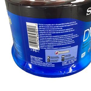 The Sony DVD+R 50 Pack features recordable discs with a capacity of 4.7 GB and a maximum write speed of 16x. The discs come in a spindle/cake box packaging, providing convenient storage and organization. Manufactured in Taiwan, these discs offer 120 minutes of recording time per disc and are ideal for storing data, music, videos, and more. The product does not come with a manufacturer warranty and is not a custom bundle.