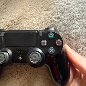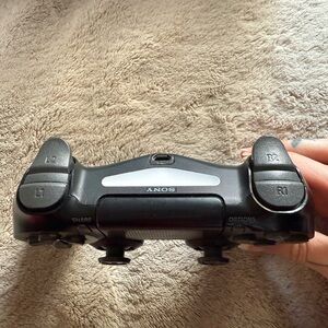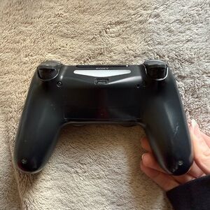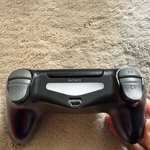 Sony DualShock 4 wireless controller in black. Comfortable ergonomic design with responsive analog sticks and tactile buttons. Includes integrated touchpad and built-in speaker for immersive gameplay. Compatible with PlayStation systems and PC.