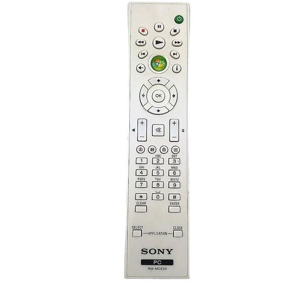 The Sony PC RM-MCE20 Remote Control is a genuine OEM product designed for Sony devices. It features a sleek white design and is specifically tested and confirmed to work for the specified model. This remote control is ideal for controlling your TV, video, or home audio devices with ease and precision.