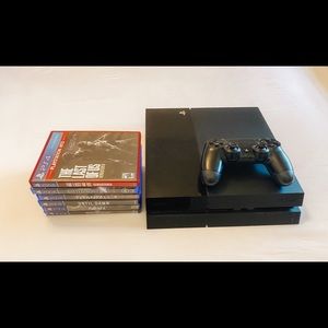 Sony PS4 with controller and games included. In good working condition, wiring included as well. Let me know if you have any questions! Thanks.