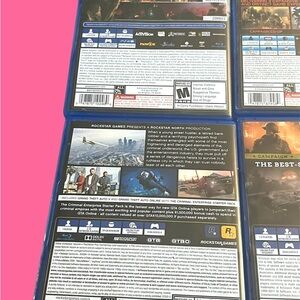 Dive into action with this Sony PS4 game set. Includes Call of Duty: Vanguard, Black Ops III, WWII, and Grand Theft Auto V. Vibrant blue cases.