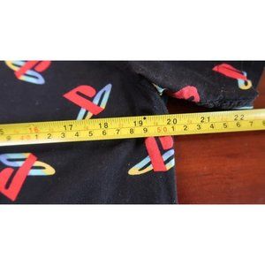 This Sony PlayStation button-up shirt is a rare find for any gamer's wardrobe. Featuring an all-over print of the iconic PlayStation logo, this shirt is perfect for any casual occasion. It has short sleeves, a button closure, and is sized as medium for men. The black color and logo theme make it a timeless piece for any PlayStation fan.
