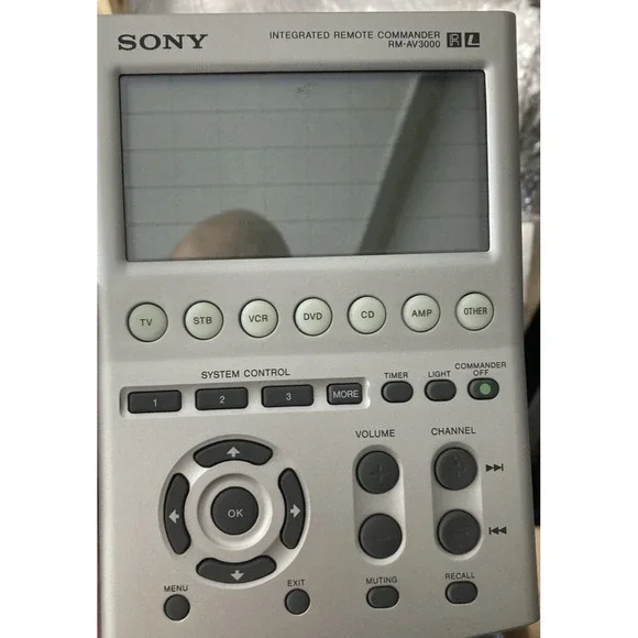 Up for sale is a Sony RM-AV3000 Universal Remote Control, featuring a touch screen interface with programmable and learning capabilities. This advanced Sony remote is designed to control multiple home entertainment devices, making it an excellent replacement or upgrade for your AV setup.