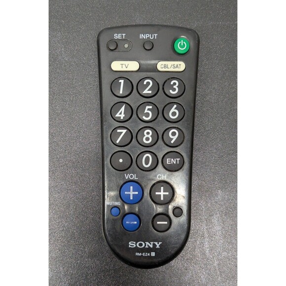 The Sony RM-EZ4 2 Device Big Button Universal Remote Control is a wireless remote control designed for use with Sony devices and other universal compatible brands. With a wireless range of 5-10 meters, this black remote features a big button design and pointer capability for easy navigation. Its compatibility with Sony devices and models makes it a versatile and convenient option for controlling your TV, video, or audio equipment from a distance.
