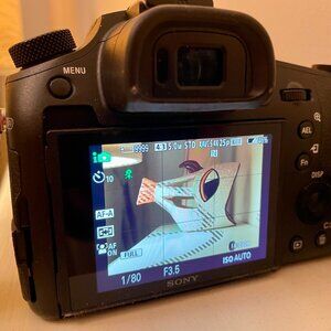 Condition: The camera has been used with care, everything works flawlessly. No scratches or damage to the body or screen. Includes original box, charger, battery, and strap.
