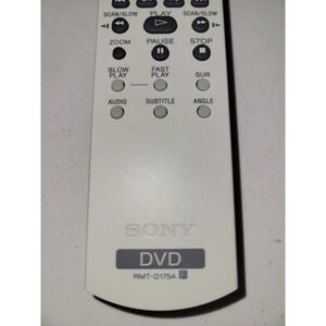 The Sony Remote Control RMT-D175A is designed specific to the Sony DVP-SR210P DVD player, allowing for easy control of your TV and DVD player with its gray color and sleek design. This remote control unit does not include the DVD player itself, making it a convenient accessory for those looking to enhance their viewing experience. The remote is compatible with DVD+R media formats, offering flexibility for your entertainment needs.