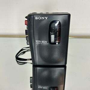 The Sony TCM-353V is a black cassette player and recorder from the Walkman product line. It features a headphone jack and plays cassette tapes. This device has been tested for electronic component only and not VOR functionality given that I do not have a tape to record. It is designed for playing media from a record player and is a personal cassette player.