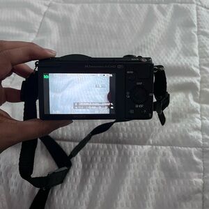 Sony digital camera with sleek black finish. Ideal for capturing high-quality photos and videos. Compact and user-friendly design.
