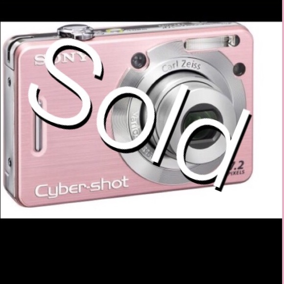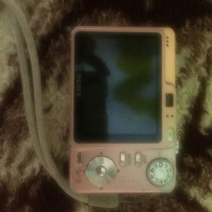 Pink Sony camera of 7.2 mega pixels. Comes with computer cable, the battery and the charger. It also comes with the memory card of 1.0 GB. has some scratches. Color on the corners has faded a bit. And at the bottom right little metal is a bit lose and a little tiny small dent. Camera works well the screen has little scratches nothing major.