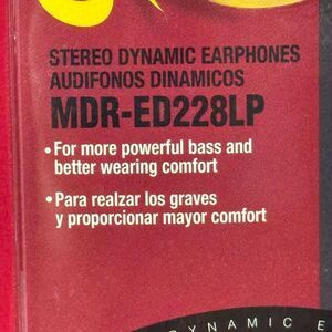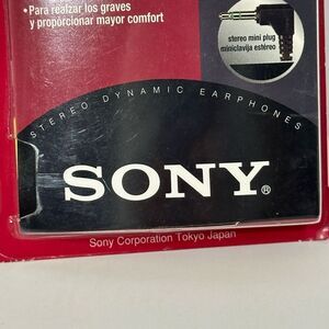 Stereo dynamic earphones, Sony, bass booster, stereo mini plug, stereo dynamic earphones, for more powerful bass and better wearing comfort, Packaging is in perfect condition. Packaging still looks brand new. Sony Corporation 1998, made in Japan