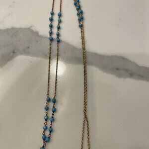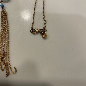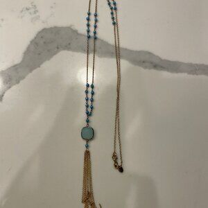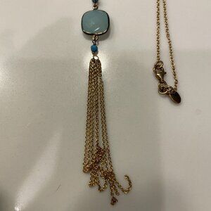 Sonya Renee "Tess" tassel pendant necklace with gold chain. 32 inches long with 3 inch tassle. Square turquoise charm and round turquise station beads. Retail $78 at Nordstrom.
