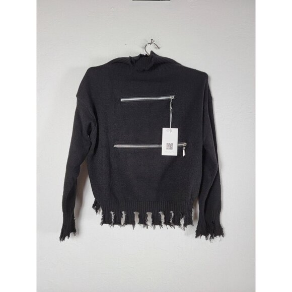 SooLinen Womens Cross Zipper Turtleneck Crop Sweater One Size Black Pullover New
