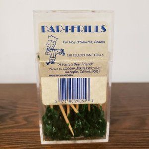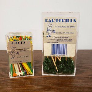 * Includes 4-Aces plastic cocktail picks with clubs, spades, hearts and diamonds and Par-T-Frills yellow and green cellophane frilled toothpicks.