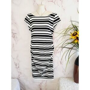 Proven to be a Soon Maternity customer favourite, the Leo Cap Sleeve Maternity Dress is perfect for your workwear wardrobe or can be easily dressed up for your next special occasion. Featuring cap sleeves and a boat neck that scoops low at the back, the side seam gathering will give enough room to grow and the stretchy textured fabric will hide any lumps and bumps.
