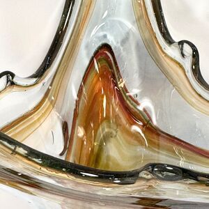Sooner Art Glass Vase Hand Blown Vintage Marble Brow Mid-Century Modern