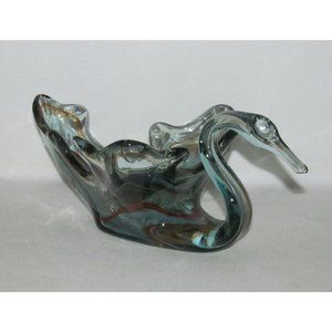 Sooner Glass Co. MCM Marbleized Aqua and Orange Medium Glass Swan