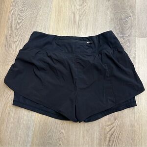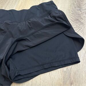 These black athletic shorts are designed for peak performance, featuring a double-layer construction with a supportive built-in liner and a lightweight outer layer for unrestricted movement.