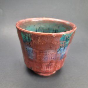 Sooz Glazebrook Art Pottery Vase / Bowl Copper Blue Green Patina JS8137