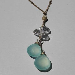 - Blue green chalcedony and crystal quartz stones