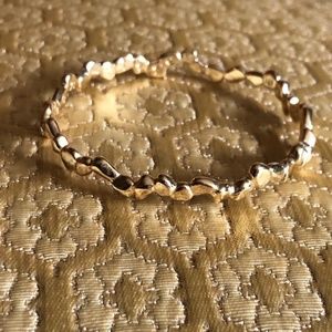 This bangle is in pristine condition. This stepping stones bangle is inscribed with the words: "The final chapter has not been written." It's a great bangle to gift to yourself or to a loved one. 14K gold vermeil. Will fit small/medium wrist comfortably.