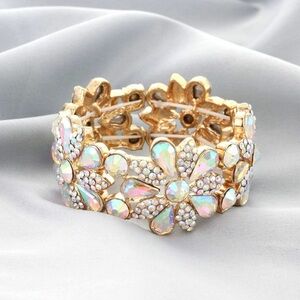 Sophia Collection Women's Floral Austrian Crystal Bangle Stretch Rhinestone Bracelet
