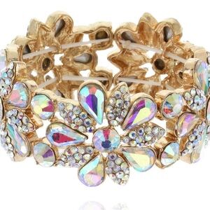 Sophia Collection Women's Floral Crystal Bangle Stretch Rhinestone Bracelet