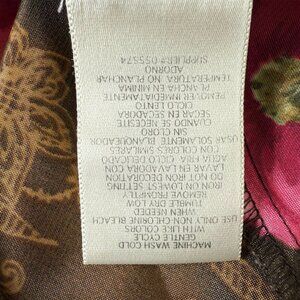 Vintage Sophia by Delicates lingerie slip dress features large pink roses against a rich brown and bronze background. 100% polyester with a satiny feel. Straps are adjustable.