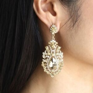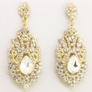 Sophia Grace Austrian Crystal Bridal Gold Tear Drop Earrings Art Deco Chandelier