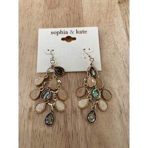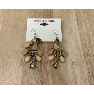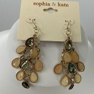 Sophia & Kate Earrings Gold Tone Teardrop Multicolor Glass Chandelier Jewelry