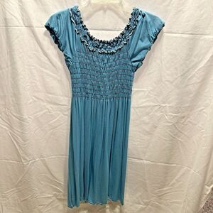 Sophia Max blue/teal short sleeve dress smocked babydoll flowy Women size medium