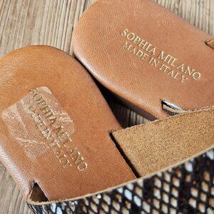 Designed in Italy, these Sophia Milano sandals feature a stylish snake print upper and leather straps, offering a blend of sophistication and comfort.