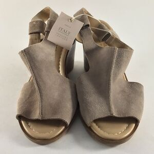 Sophia Milano womens peep toe slingback wedge sandals taupe brown size 8.5 NWT