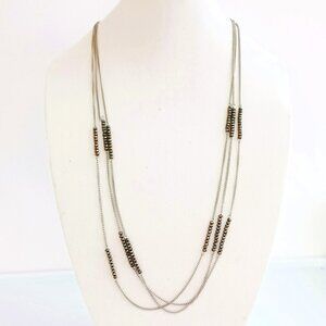 Sophia Multi Strand Necklace 18" Faux Hematite Bead Silver Tone Layered