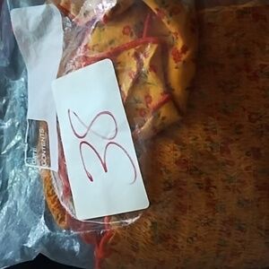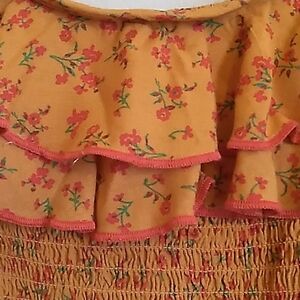 Halter top with ruffled sleeves orange with floral design (2) medium