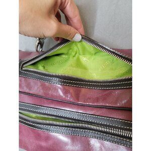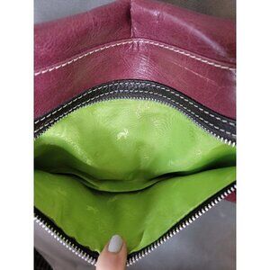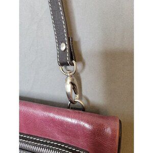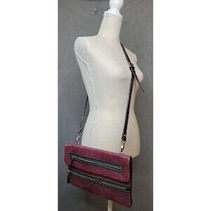 Sophia Viscon Burgundy Brown Trim Leather Zipper Crossbody Shoulder Handbag, EUC