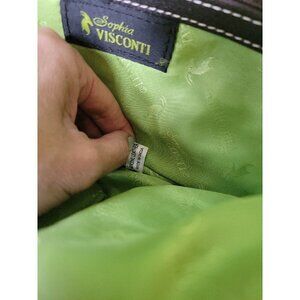 Sophia Viscon Burgundy Brown Trim Leather Zipper Crossbody Shoulder Handbag, EUC.