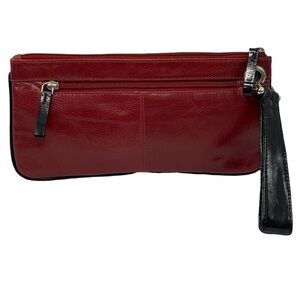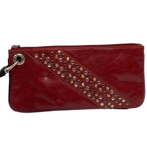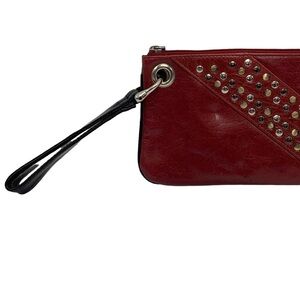 Sophia Visconti Dark Red Black Leather Studded Wristlet Clutch