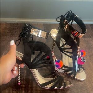 Stunning Sophia Webster heels, featuring a sophisticated black and gold color palette. Great condition. Lightly worn. Box and dust bag included.