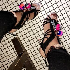 Sophia Webster Black Yasmina Pom Pom Sandal
