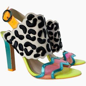 Sophia Webster Dionne Heels Multicolor Leopard Print Sandals Size 36.5