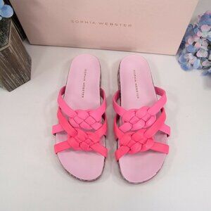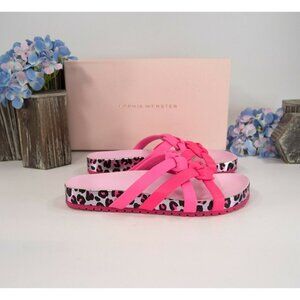 Sophia Webster Neon Pink Metallic Leopard Ramona Pool Slide