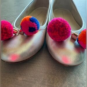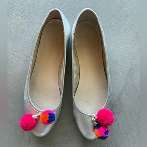 Sophia Webster Silver Ballet Flats with Colorful Pom-Pom Detail
