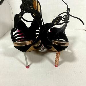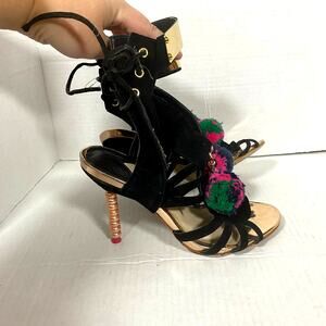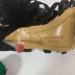 Sophia Webster Yasmina Pom Pom Sandal High Heel FLAWED Black Sz 36