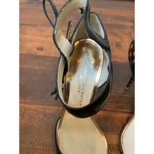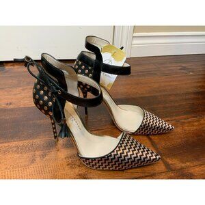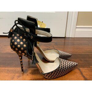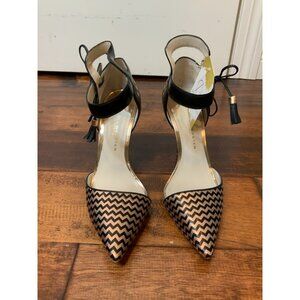 Sophia Webster x J. Crew Pippa Black & Gold Jacquard Pointed Toe Heels Sz 37 | 7