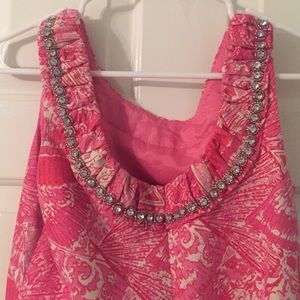 It's getting hot in here print. Highly coveted. Rhinestone and beading around neck and bottom trim. Shimmer in fabric. Wore for two hours