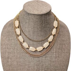 Sophia's Golden Elegance: A Four-Layered White Stone Bead Statement Necklace