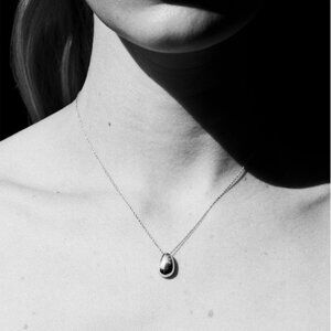 Dainty pendant adorning Sophie Buhai's necklace is playfully shaped to resemble a 'Tiny Egg'.